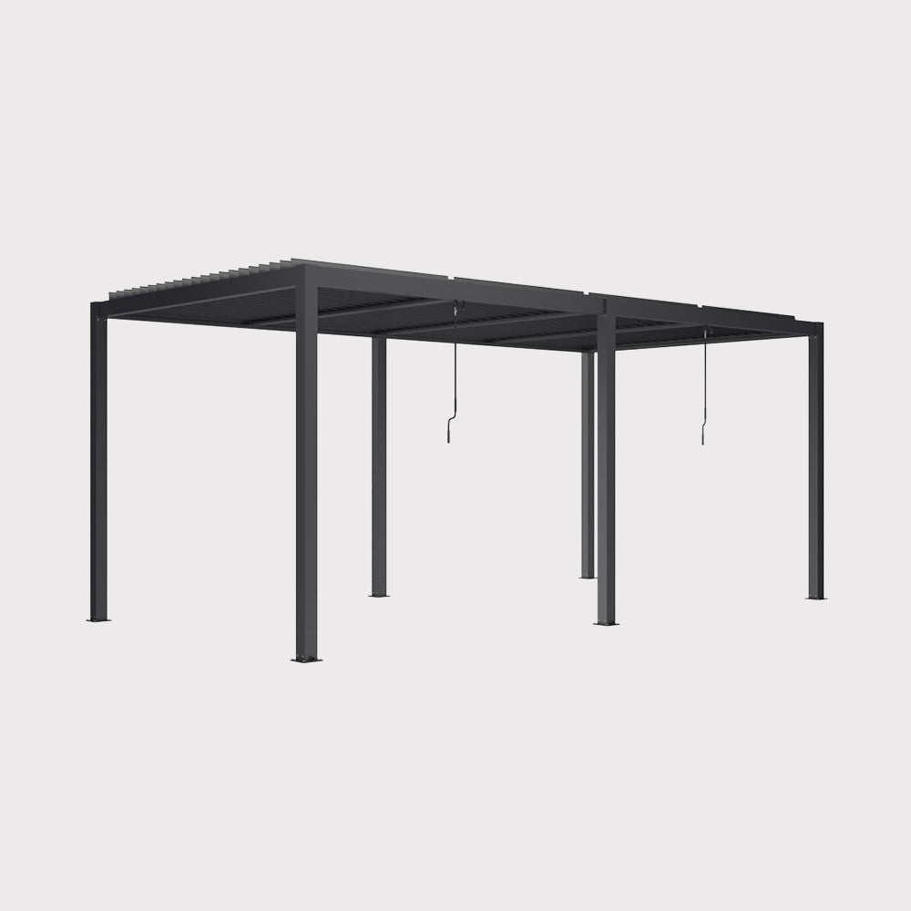 The Luxe 7.8 x 4 m garden pergola is a spacious and modern roof that's perfect for large terraces and gardens. Its solid, all-aluminum construction ensures corrosion resistance and long-lasting durability. A manually adjustable roof made of aluminum slats allows for precise control over the amount of light and shade, while the division into two independent zones enhances comfort. Built-in LED lighting lends the space a unique atmosphere even after dark, while the WaterSpill drainage system ensures the pergola remains functional regardless of the weather. Stable legs with mounting holes ensure secure attachment to the ground.