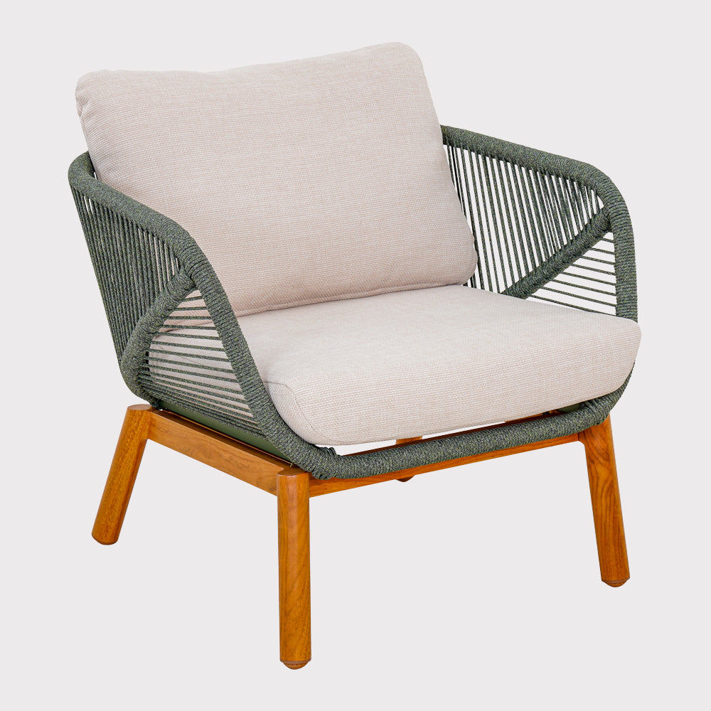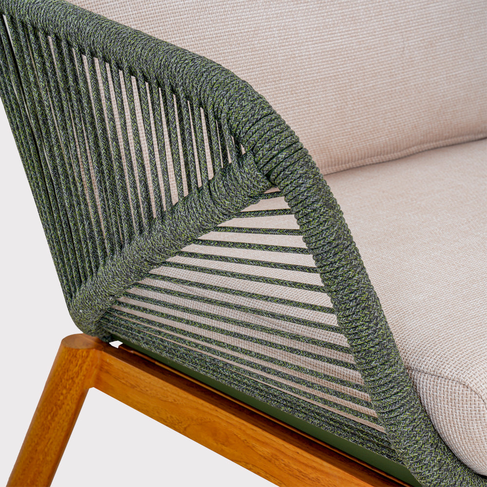 The Auro coffee set combines modern design and comfort, perfect for five people. The aluminum frame, painted to mimic wood, guarantees durability and elegance, while the seats with a fashionable rope finish add charm. Comfortable cushions made of moisture- and fade-resistant olefin fabric ensure comfort for many seasons. The set is complemented by a functional coffee table with an easy-to-clean ceramic top. This is an excellent choice that will delight with its stylish appearance and practical features.