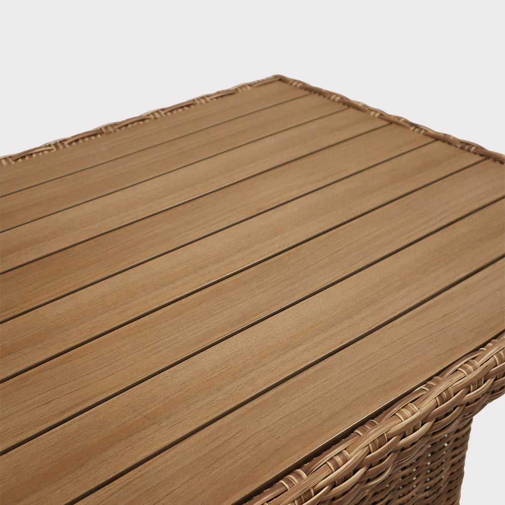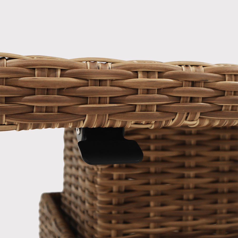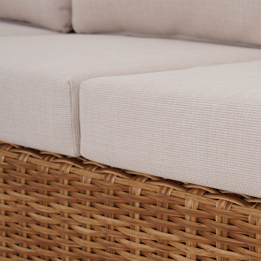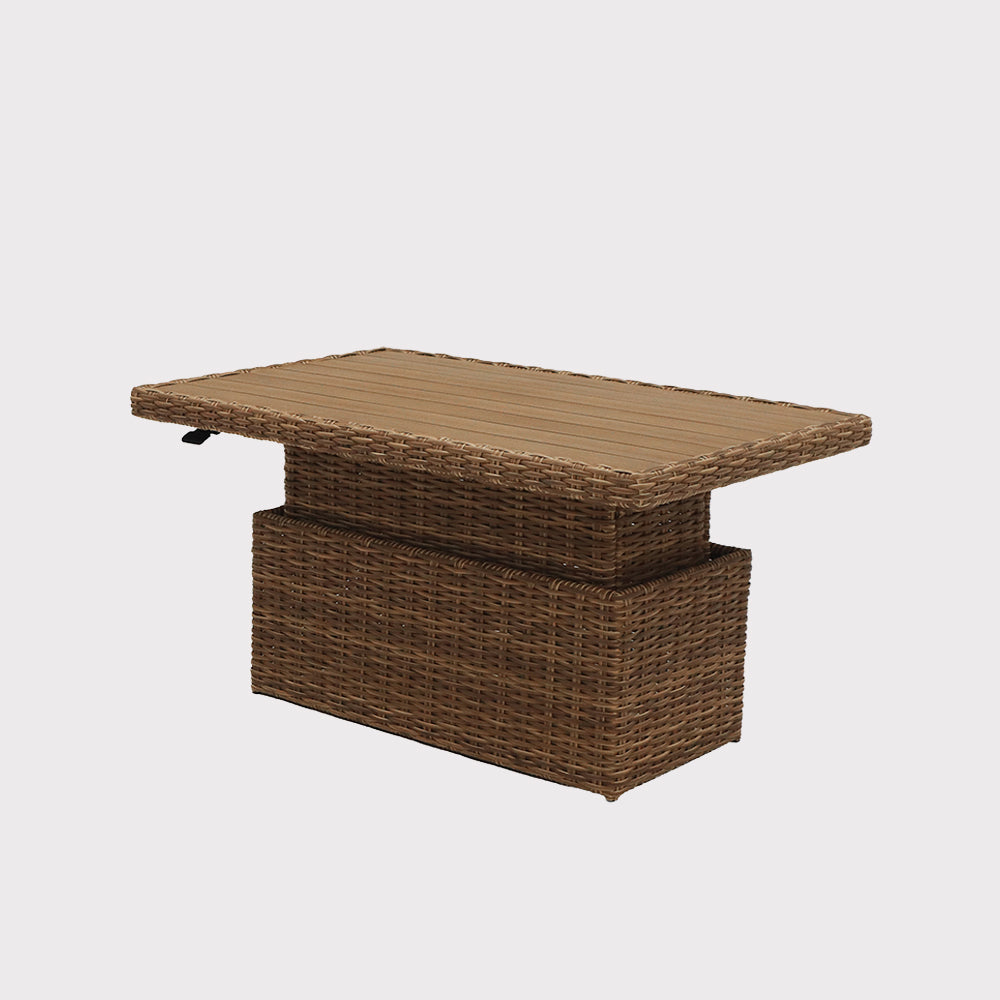 Kawowy zestaw mebli ogrodowych Porto to elegancka propozycja do stworzenia komfortowej strefy wypoczynku na tarasie lub w ogrodzie. Połączenie lekkiej formy z wyraźnie zarysowanym charakterem sprawia, że zestaw doskonale odnajduje się zarówno w nowoczesnych, jak i bardziej naturalnych aranżacjach. Dwie wygodne sofy, w tym jedna z praktycznym stolikiem bocznym, oraz stół z regulowanym blatem pozwalają swobodnie dopasować przestrzeń do codziennych rytuałów – od spokojnej kawy po spotkania w większym gronie. Grube, miękkie poduszki zapraszają do długiego relaksu, a harmonijne proporcje zestawu tworzą przytulną, ale uporządkowaną kompozycję. Porto to meble, które budują atmosferę wypoczynku i sprawiają, że ogród staje się naturalnym przedłużeniem domowej strefy komfortu.