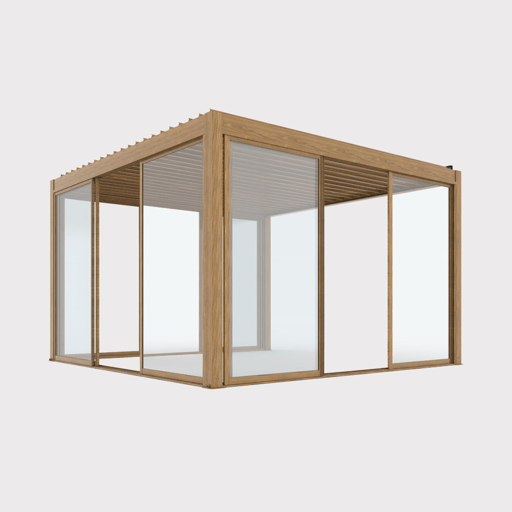 Pergola ogrodowa elektryczna Luxe 4x4 m w kolorze drewna
